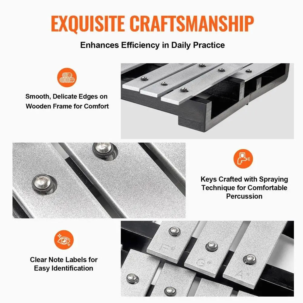 The professional 30 note glockenspiel xylophone kit includes: 30 note xylophone x1, mallets x4, and carrying bag x1. It can be used for school curriculum, band performances, and leisure entertainment. The wide range of notes from G5 to C8 and high-quality materials ensure comfort during daily use!