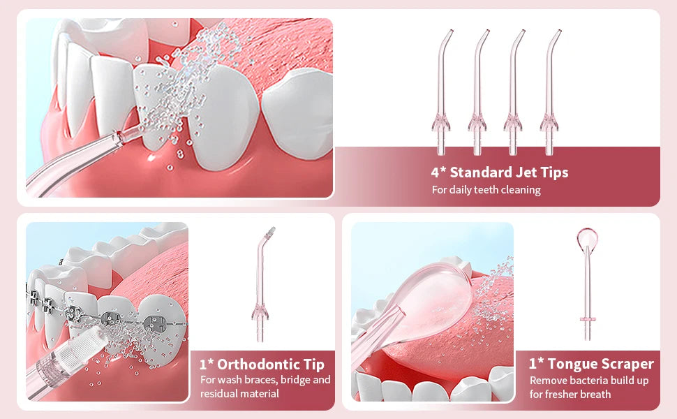 4.350ML Detachable Water Tank & 6 PCS 360 ° Rotatable Water Jet Tip.