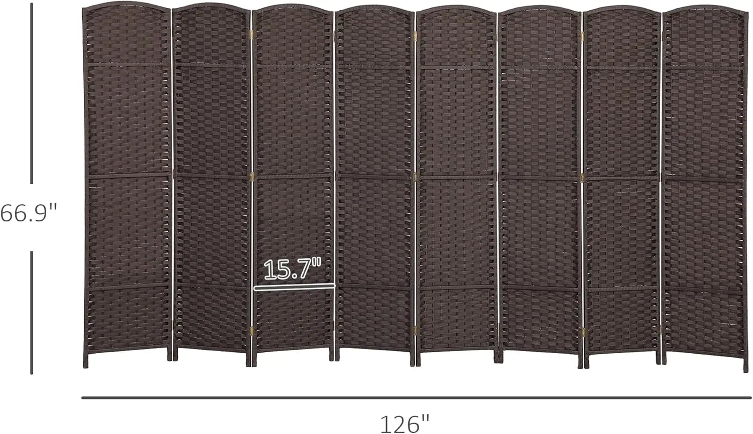 Room Divider, 8 Panel Folding Privacy Screen, 5.6' Tall Freestanding Wall Partition for Home Office, Bedroom, Brown