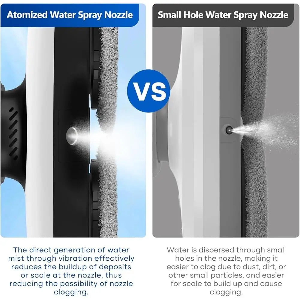 Easy to clean: Say goodbye to the tediousness of traditional window cleaning, the automatic window cleaning robot is designed to be lightweight and easy to operate. Just one button start, you can enjoy the convenience of automatic cleaning Dual side water spray: Window cleaner robot with dual water spray will spray water in the forward direction, pre-moistening the stains, so that the cleaning is deeper and more thorough. Window glass cleaning machine upgraded with atomized nozzles that are not easily clogged .